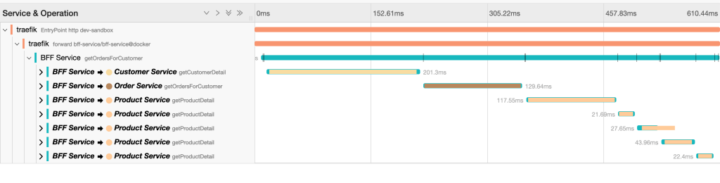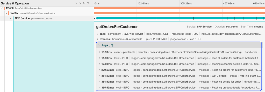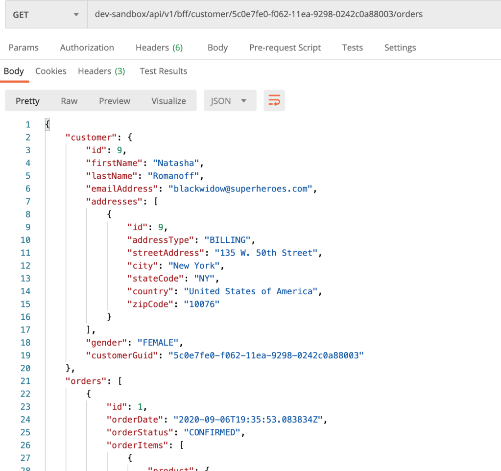 Next we will hit an endpoint to get all orders of a customer – /api/v1/bff/customer/{customerId}/orders