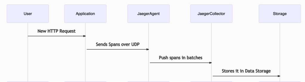 This is how the data flows from instrumented application to Jaeger