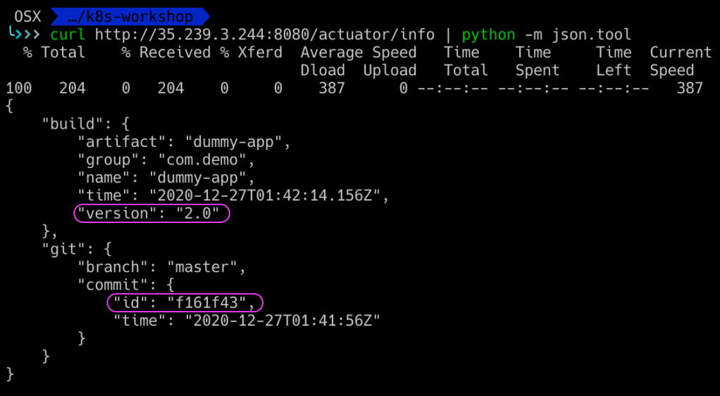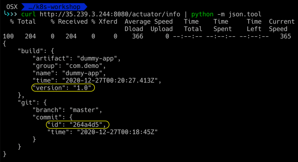 chatterjeesunit/dummy-app, is an Spring Boot application that exposes the current version info into the actuator url –/actuator/info