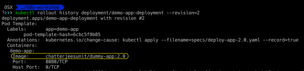As you can see that the rollout history does not gives us information about which container image was deployed during the deployment (we cannot get that information from revision or change-cause).