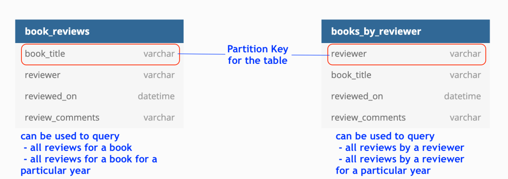 We will cover partition keys and data modeling in Cassandra in future blogs, that will help you understand the reason and logic behind this kind of duplicate table storage.