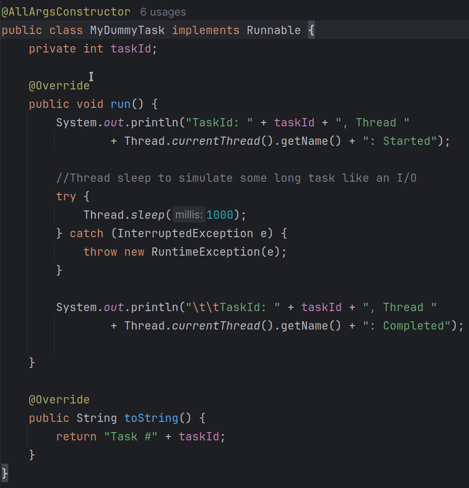 For all our code examples – we will use this “dummy” Runnable class (MyDummyTask.java)